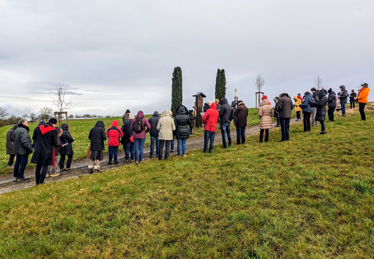 Sein Glaubens- und Lebensweg prägte auch die Kreuzwegmeditationen, die Pfarrer Dr. Eugen Daigeler zusammengestellt hatte. Sie sind zum Nachlesen im Pfarramt Stadtlauringen erhältlich. Am Wohnhaus des Märtyrerpriesters begann der Zug bis zur ersten Kreuzwegstation. Carolin Nöth und Franz Josef Heusinger von der Stadtlauringer Kolpingsfamilie trugen Gebete und Betrachtungen vor. Bewusst gingen die Pilger zwischen den 14 Stationen schweigend, um das Gehörte nachklingen zu lassen. Den Abschluss bildete das Jubiläumsgebet vor der Kirche in Sulzdorf.